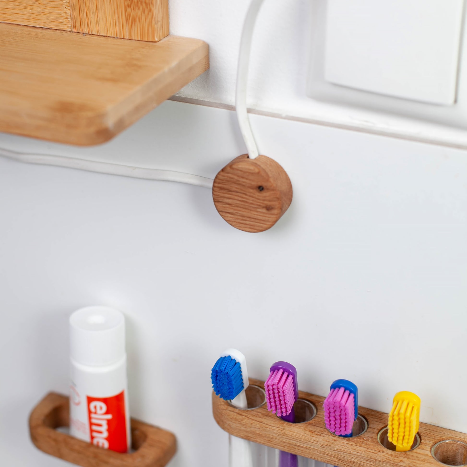 Dekorative Kabelhalter aus Eiche